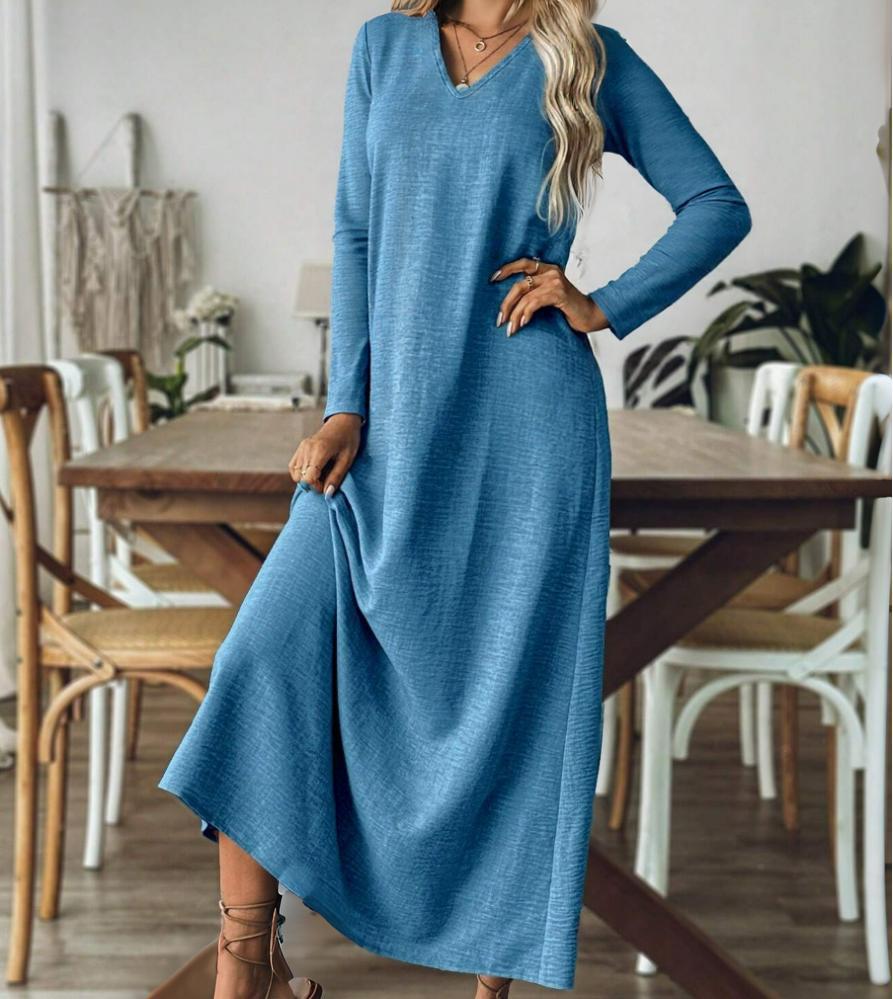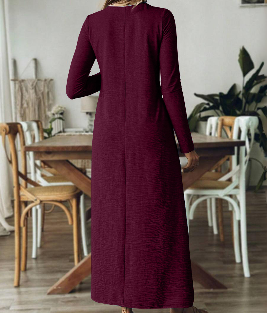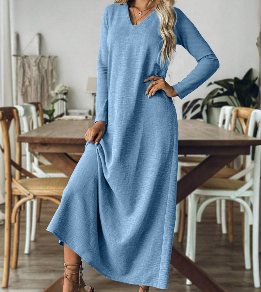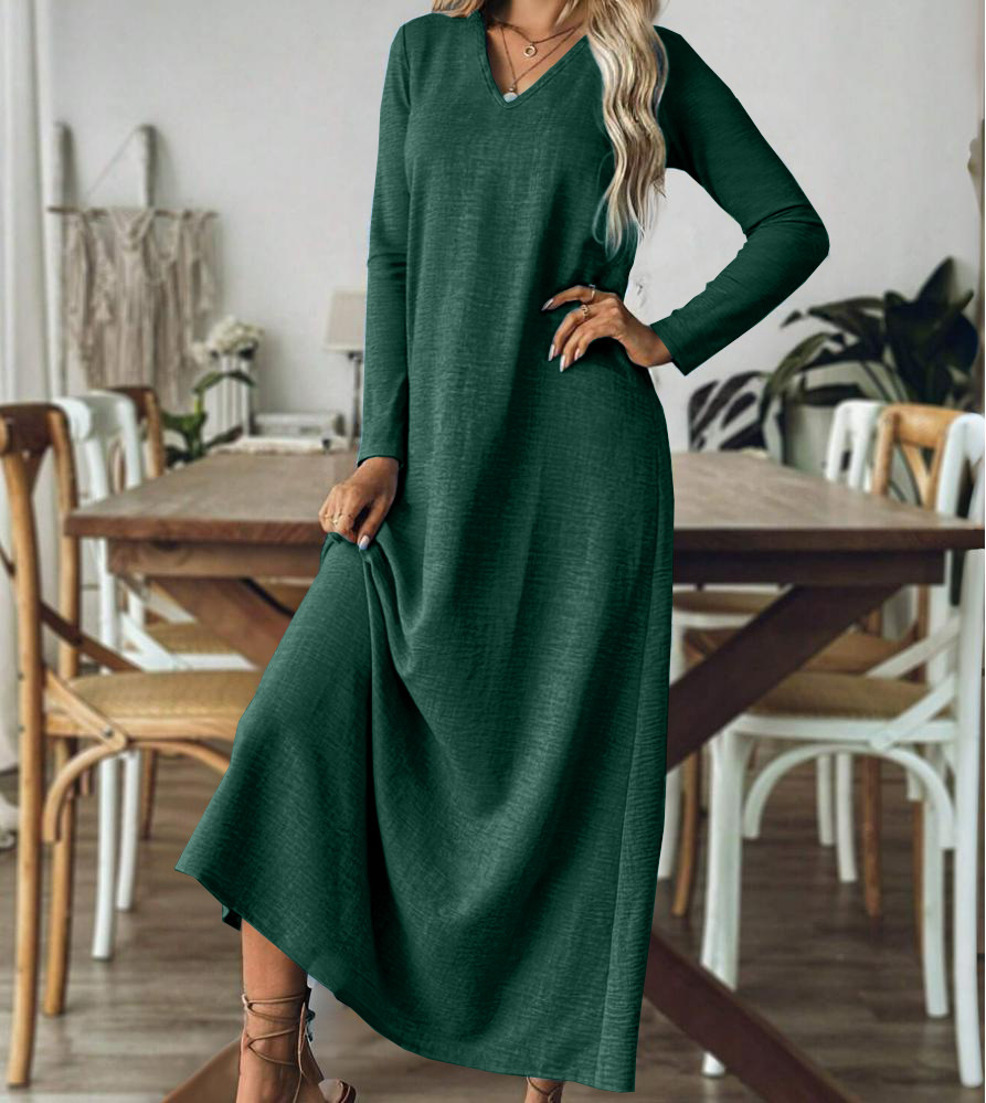 Loose and thin temperament solid color long-sleeved dress m302023