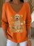 Shoulder V-Neck Long Sleeve Pullover 3D Digital Printing Women's Top T-Shirt m301684