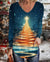 Loose 3D V-neck long-sleeved T-shirt women's Christmas printed bottoming shirt m302098