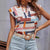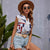 Printed chipped neckline bat sleeve V-neck pullover women's top m300948