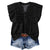 V-neck broken points loose buttons pleated top T-shirt women's m301023
