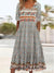 Ladies Casual Crew Neck Pullover Short Sleeve 3D Printing Pleated Waist Swing Long Dress Dress m301299
