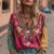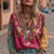 Ladies Casual Vintage Bohemian V-Neck Top Ethnic Style Long Sleeve m301956