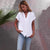 Linen temperament commuter short-sleeved shirt solid color V-neck women's shirt m301228