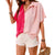 New fashion color matching cardigan buckle lead short-sleeved women's top m300998