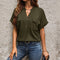 Summer short-sleeved shirt solid color v-neck pocket elegant commuter shirt women's m300847