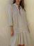 Stand-up collar button-down nine-quarter sleeve shirt cotton pleated hem dress m300679