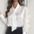 Autumn solid color fashion design sense streamer long sleeve shirt women's clothing m301975