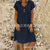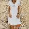 Summer new V-neck short-sleeved casual solid color cotton and linen dress m302054
