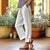 Women's cotton and linen loose solid color elastic waist pocket straight casual pants m301424